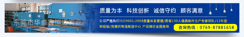 東莞市華盛鑫恒通實業(yè)有限公司成立于2003年08月,總占地面積6200㎡,現(xiàn)有員工130人(其中本科以上技術(shù)研發(fā)人員8人),是一家致力于各種行業(yè)清洗架、鋼化架、模組頂針測試治具的專業(yè)非標夾、治具設計制造商。公司擁有CNC加工中心(北京精雕)、沖床、剪板機、折彎機、線切割機、氬弧焊機、點焊機、碰焊機、車床、銑床、磨床、鉆床、攻牙機、超聲波清洗機等不同種類不同規(guī)格、10T-200T等各類加工設備90臺。公司嚴格執(zhí)行ISO9001:2008質(zhì)量體系管理,品質(zhì)檢測儀器分別有:現(xiàn)代化高端檢查設備投影儀(2.5次元檢測儀)、測硬器、鹽霧測試機若干。等經(jīng)過長期的摸索,擁有一批高素質(zhì)的生產(chǎn)隊伍及專業(yè)的工程技術(shù)人員,設計各種配套設施。 |